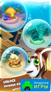 Заработанные ресурсы можно использовать для покупки разнообразных рыбок и декоративных элементов. Постепенно игрок формирует уникальный подводный уголок, наполняя его яркими обитателями и украшениями. Коллекционирование становится важной частью процесса: чем больше редких рыб вы соберете, тем интереснее и красивее будет ваш виртуальный океан.Визуальный стиль и удобство