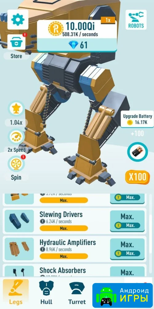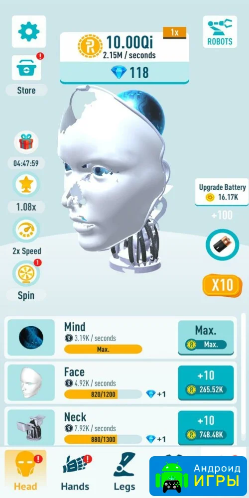 Idle Robots — увлекательная стратегическая игра для смартфонов, в которой вы сможете собрать собственного уникального робота с нуля. Благодаря большому выбору деталей и технологий каждый игрок получает возможность создать совершенно неповторимую механическую конструкцию.