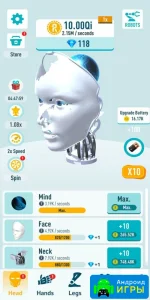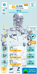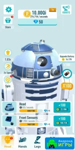 Idle Robots можно скачать бесплатно, получив модификацию с большим количеством денег для более быстрого развития. Процесс сборки не требует спешки — важно тщательно продумывать каждую деталь и её расположение. С каждым новым улучшением ваш робот становится всё более совершенным и технологичным. Начинать предстоит с базовых частей, постепенно переходя к сложным механизмам и системам. В игре присутствует разнообразный контент, включая элементы, вдохновлённые культовыми роботами из фильмов и игр. Дополняют атмосферу качественные визуальные эффекты и приятное звуковое сопровождение.Особенности