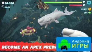 Hungry Shark Evolution является прекрасным проектом для тех, кто любит акулы и кровь. Вам предстоит управлять хищником и съедать всю живность, которая попадается на пути. В самом начале геймплей имеет схожесть с реальностью, что ещё больше вызывает восторг у пользователей. Всё что необходимо делать, так это плавать и питаться всем живым, в том числе и людьми, решившими посетить пляж.
