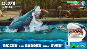 Суть игры довольно-таки простая: всё что надо, так это плавать и не умирать. Если акула не трапезничает, то она умрёт спустя непродолжительное время. Чем дольше пользователь проживёт, чем быстрее начнёт тратиться здоровье. Попытайтесь подбить личный рекорд и выполнять специальные задания. На нашем сайте доступна взломанная версия игры, которая открывает доступ к огромному количеству денег абсолютно бесплатно.
