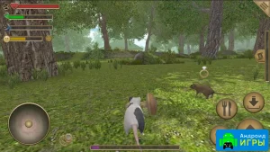 Визуал отличается высоким качеством и реалистичностью, что несомненно покоряет многих игроков. Вас будут окружать разные трехмерные предметы, а сам мир сделан в HD качестве. Совокупность этих факторов делает геймплей более увлекательным. Спецэффекты также сделаны на высоком уровне, как и звуковое сопровождение. Управление отличается удобством и простотой, так что вы сможете без проблем адаптироваться в игровом мире. Справа находятся кнопки атаки, прыжка и взаимодействия с пищей, а слева - джойстик для перемещения.