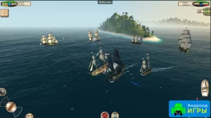 The Pirate: Caribbean Hunt для Андроид -проект для смартфонов, который интересен своей необычной тематикой. Дело в том, что здесь игроку нужно взять под своё управление настоящий пиратский корабль, который отправится на противостояние военным суднам, а также простым жителям. Набирайте команду, прокачивайте собственный корабль и богатейте нападая на каждого встречного.