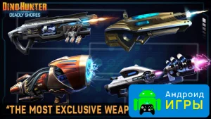 DINO HUNTER: DEADLY SHORES для Андроид – симулятор охотника, который предлагает отправиться в необычное место, где обитают настоящие динозавры. Охота на них сильно отличается от всего, что удаётся встретить в магазине приложений по охотничьей тематике. Тут нужно быть максимально осторожным, а также подбирать правильное оружие под каждого динозавра. Если промахнуться несколько раз, можно запросто превратиться в добычу и проиграть.