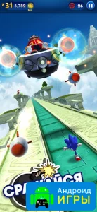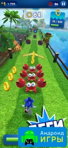 Вы сможете окунуться в мир детства, когда познакомились с Соником и сыграли на первой приставке. Это незабываемые ощущения, и их можно вновь испытать на своём телефоне. Всё что требуется, так это управлять главным героем и бегать по разным локациям. Обходите сложности, собирайте кольца и устраняйте врагов, которые встречаются на пути.Колечки требуется собирать абсолютно всегда и везде, поскольку они понадобятся для прохождения. Сразу стоит отметить, что тут отсутствует стандартный сюжет, но есть огромное количество уровней. С каждым разом уровень будут абсолютно новым. Сам игровой процесс бесконечный, но скорость бега персонажа будет увеличиваться, как и количество препятствий. Устанавливайте всё новые и новые рекорды, чтобы попасть в рейтинговую таблицу.
