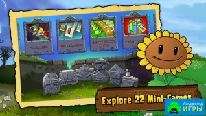 Проект Plants vs. Zombies FREE отличается привлекательной мультипликационной графикой, выполненной в двухмерной стилистике. Она достаточно простая, но использование пёстрых цветов и мягких граней на всех внутри-игровых предметах делает картинку чуть более привлекательной. За счёт двухмерности смартфону не придётся обрабатывать большого количества элементов, что позволяет играть даже на самых слабых устройствах.Игровая механика