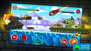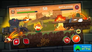 В самом начале нужно выбрать танк из своего гаража, после чего запустить поиск противника. Сражение осуществляется с реальными игроками на случайных картах. Рельеф генерируется случайно, что позволяет сделать бои непохожими друг на друга. Так, для победы требуется перемещаться по сторонам, уклоняясь от снарядов врага. Параллельно используйте все свои пушки и пытайтесь попасть по слабым местам друг друга. Чем лучше реакция и больше пушек на танке, тем больше шансов победить. Но не стоит забывать и про необходимость грамотно использовать окружающий рельеф, иначе победить не получится. Со временем удастся модифицировать броню и оружия, сделав танк более эффективным.Мультяшная графика