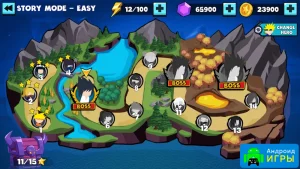 Сама игра выполнена в двухмерной стилистике, что позволяет видеть всю арену. Но несмотря на простую визуальную стилизацию, красочные спецэффекты в большом количестве вносят огромное разнообразие. Отметим и действительно простое управление, осуществляемое виртуальным стиком и несколькими кнопками. Каждый сможет разобраться и начать продвигаться по уровням. На нашем сайте можно найти взломанную версию, в которой все покупки становятся бесплатными.Особенности