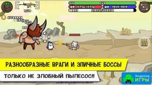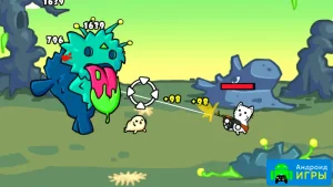 Вы будете контролировать все ресурсы и воинственных котов. Выдавайте своим персонажам оружие и приступайте к сражению, отбрасывая монстров всё дальше и дальше от своих владений. Также можно построить крепости, чтобы скрываться от атак и начинать наступление. Проходите многочисленные уровни и пополняйте оружейный арсенал, который сделает мяукающих солдатов более сильными. Например, в ассортименте есть снайперские винтовки, артиллерия, полевые пушки, автоматы и многое другое.Геймплей
