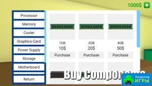 PC Simulator - крайне занимательный симулятор на смартфон, где можно начать собирать собственный ПК из различных комплектующих. Проект отличается не только интересным геймплеем, но ещё и возможностью улучшить собственные знания про сборку компьютеров.