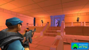 Графика хорошо продумана, поскольку разработчики тщательно постарались над её созданием. Она смотрится забавно, что несомненно вызывает положительные эмоции у игроков. Также создатели отлично проработали 3D формат и внедрили крутые спецэффекты, которые дополняют всё происходящее на дисплее. Мультяшная стилизация и HD качество делает игровой процесс динамичным и забавным. За счёт продуманной механики и реалистичной физики вы будете наслаждаться выстрелами и прыжками. С управлением проблем возникнуть не должно, поскольку оно такое же, как и в стандартных шутерах.