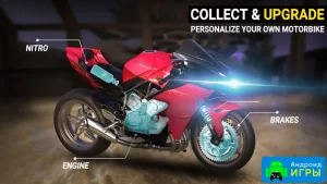 Благодаря большому количеству очков, вы можете обновить мотоцикл, поменять его внешний вид или же усовершенствовать.