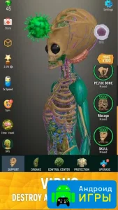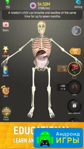 Вы можете открывать новые навыки, прослеживать процесс создания человека, формируя абсолютно всё. На всё это надо тратить клетки. Можно увеличивать скорость прогресса и улучшить различные навыки. Рост осуществляется постепенно, ведь трата клеток прибавляет всего лишь несколько миллиметров. Это происходит в режиме реального времени в 3D исполнении. Вы можете полностью понаблюдать за процессом, рассмотрев поближе как это всё происходит. Создание человека затрагивает системы отдельно, что весьма реалистично.Запрещается всё сразу улучшать, поскольку нервная система или каркас тела разрозненные друг с другом, но их объединяет нечто одно. Вы можете начать с опорно-двигательного аппарата, после приступить к органам. Нет никакой разницы, чему вы отдадите предпочтение, поскольку они все независимые между собой и необязательно первым делом создавать грудную клетку для помещения туда лёгких и сердца. Лучше их создавать первую очередь, поскольку это легче. Этот симулятор предлагает прибегнуть к использованию бустеров или иных бонусов, поскольку это поможет быстрее пройти уровень. Применяйте скоростные таблетки и посмотрите, как быстро всё происходит.