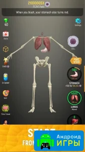 Запрещается всё сразу улучшать, поскольку нервная система или каркас тела разрозненные друг с другом, но их объединяет нечто одно. Вы можете начать с опорно-двигательного аппарата, после приступить к органам. Нет никакой разницы, чему вы отдадите предпочтение, поскольку они все независимые между собой и необязательно первым делом создавать грудную клетку для помещения туда лёгких и сердца. Лучше их создавать первую очередь, поскольку это легче. Этот симулятор предлагает прибегнуть к использованию бустеров или иных бонусов, поскольку это поможет быстрее пройти уровень. Применяйте скоростные таблетки и посмотрите, как быстро всё происходит.