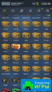 Case Simulator Ultimate является интересным игровым проектом, в котором вы получите массу незабываемых эмоций. Вам нужно будет открывать многочисленные кейсы из знаменитой игры CS GO. Вы сможете опробовать разные вариации для открытия и отыскать собственный ящик. Наслаждайтесь интересным времяпрепровождением и скачивайте развлечение с нашего портала. Оно бесплатно распространяется на все устройства, которые находятся под управлением операционной системы Андроид. У нас на сайте доступна взломанная версия с модом на бесплатные покупки.