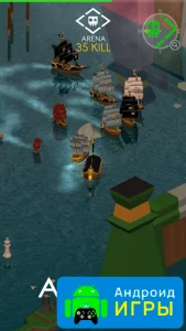 DOKDO для Андроид – одна из немногочисленных игр про пиратов, где игроку нужно взять под своё управление корабль с чёрными парусами. Для продвижения по сюжету придётся собрать на абордаж самые разные суда, забирать у них ресурсы и прокачивать собственный корабль. Делать это нужно как можно быстрее, ведь с каждым новым ограблением интерес других кораблей будет всё увеличиваться и увеличиваться, и со временем придётся справляться с охотой за вашей головой.