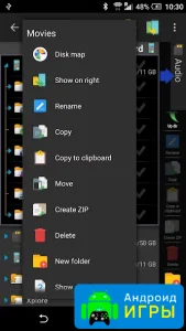 В этом программном обеспечении вы сможете создавать папку и удалять ее, перемещать и копировать контент, а также вставлять и вырезать его. На самом деле, это стандартные функции, которые есть и во многих других файловых менеджерах. Однако эта программа отличается тем, что обладает следующими опциями:- предлагает изучить информацию о гаджете;