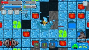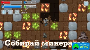Начинайте игровой процесс за счёт дроидов. Их основная задача заключается в том, чтобы выполнять ваши приказы. Спускайтесь всё глубже и глубже, находя на пути огромное количество драгоценностей, которые позволят вас обогатить. Вам будут часто встречаться разные пещеры и подземные провалы, поэтому нужно быть готовым к путешествию в такие места. Помимо добычи, вам также придётся отбиваться от врагов. Гоблины будут атаковать дроидов, как только их заметят. Роботов нужно прокачивать, чтобы они смогли избавляться от противников. На пути также будут попадаться препятствия, так что стоит осторожно их обходить. Ваша главная задача - это двигаться к единой цели.Дополнительно
