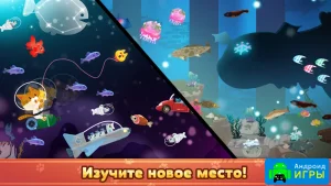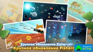 The Fishercat является увлекательной казуальной игрой с необычным геймплеем, где вам необходимо будет исследовать разные локации. Каждая из них радует огромным количеством разнообразных разновидностей рыб. Проект бесплатно распространяется на все актуальные версии операционной системы Андроид. А если интересует взломанная версия, которая открывает доступ к большому количеству денег, то её можно найти на нашем сайте.