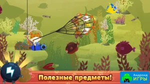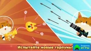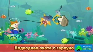 Визуал выполнен на достойном уровне и хорошо проработан, что полностью является заслугой разработчиков. Персонаж и локации сделаны в мультяшной стилизации, которая обладает детализированной и четкой текстурой. Кроме того, графика обладает двухмерным форматом. Спецэффекты довольно-таки простые и мало чем выделяются. Если же говорить об управлении, то тут всё достаточно понятно. Вам необходимо использовать лишь один палец, который нужен для прицела. Тапайте по рыбе и стреляйте в неё. Постарайтесь проявлять меткость, чтобы словить рыбу с первого раза.Особенности