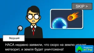 Метеорит 60 секунд! - это забавный игровой проект в юмористическом формате, который несомненно вас порадует. Всего раунды будут длиться 1 минуту. То есть, у вас есть всего 60 секунд, чтобы выполнить задачу и увидеть результат. Этот юмористический экшен можно установить на телефоны и планшеты, которые работают на базе операционной системы android. Взломанная версия игры, которая предоставляет доступ к полному эпизоду и обеспечивает отключенную рекламу, доступна на этом веб-портале.