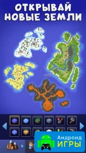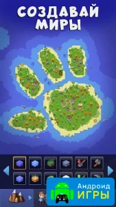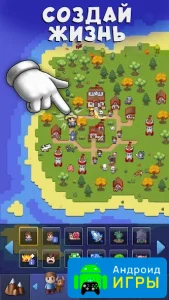 Визуал выполнен в пиксельном стиле. Так что вы будете смотреть за пиксельной планетой с видом камеры сверху. Вы сможете быстро перемещаться в нужные зоны за счёт парящей камеры. Все компоненты включают в себя небольшие квадратики, которые окрашены в разные оттенки. Благодаря этому создается уникальная атмосфера и прикольные иллюстрации. Управление, в свою очередь, отличается интуитивной понятностью, так что трудностей с его освоением у вас не возникнет. Если вам нравится симуляторы по созданию мира, то обязательно скачайте этот вариант. Наслаждайтесь интересным геймплеем и по достоинству оцените данный проект.