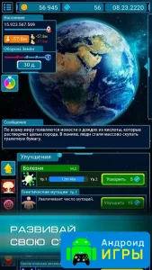 Конец света: Заражение мира для Андроид – необычный кликер, который заставляет игроков уничтожить планету. Люди находятся на закате своего развития, из деградации и чрезмерного загрязнения окружающей среды своими технологиями, планета нуждается в полноценной очистке. Игрок берёт на себя эту роль, заражая всё окружающее крайне опасными бактериями. Но нужно помнить, что человечество не будет сидеть сложа руки а попытается сделать всё возможное, чтобы подавить эпидемию и остановить игрока. В этом соревновании придётся хорошо продумывать каждое своё действие, чтобы добиться успеха.