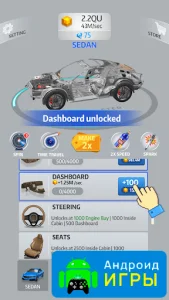 Idle Car представляет собой игровой проект, который обязательно понравится юзерам, обожающих транспортные средства. При первом запуске игры вы окажетесь в гараже, где нужно будет собирать разнообразные машины с самого нуля. Данный симулятор можно скачать и использовать на гаджетах, которые находятся под управлением операционной системы android. А у нас на сайте доступна взломанная версия, которая открывает доступ к бесконечным деньгам.