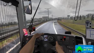 Разработчики тщательно проработали игру, так как продумали абсолютно все детали. Вы сможете сыграть в реалистичный симулятор, где учтены все нюансы реальной жизни. Выбирайте доступные маршруты, продавайте билеты людям и подъезжайте к стоянке, где они будут вас ожидать. Открывайте двери для входа, чтобы клиенты смогли зайти в транспорт. Когда автобус будет полностью готов к поездке, то начинайте движение. В вашем распоряжении будет навигатор, который поможет двигаться по нужному пути. В процессе движения пассажиры могут попросить остановиться или попросить включить треки. Для удовлетворения их потребностей и заработка большего количества денег требуется обеспечивать качественное обслуживание на постоянной основе.Постарайтесь осторожно водить и никуда не врезаться, поскольку дорожно-транспортное происшествие повлечёт за собой потерю финансов. Чем больше ошибок вы допустите, тем меньше получите в результате. Заправляйте автобус, включайте поворотники и сделайте поездку максимально безопасной и комфортной. Сразу стоит отметить, что все маршруты довольно-таки длинные. Поэтому вам придётся иногда ехать целые сутки. В ночное время не забывайте включать фары, а при плохих погодных условиях в виде дождя и снега - дворники.