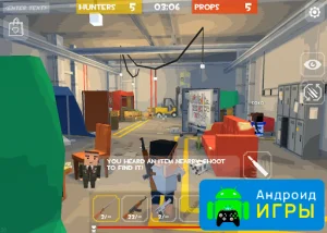 HIPE PROP представляет собой игровой проект, который окунёт вас в уже знакомую детскую игру - прятки. Но данное развлечение отличается от того, что было в детстве. Здесь вы будете разделены на команды: тех, кто охотится и прячется. Но у охотников будет оружие. Пользователи, которые будут прятаться, смогут воплощаться в разные предметы, находящиеся на локации. Таким образом можно будет маскироваться среди разнообразных объектов и выдавать себя за часть карты. Игру можно бесплатно скачать и использовать на устройствах, которые находятся под управлением android. Если интересует взлом с модом на много денег, то его можно найти на этом веб-портале.