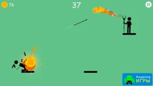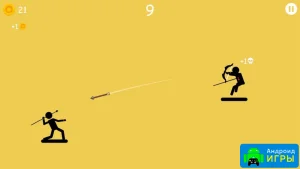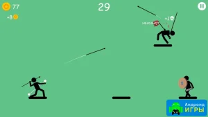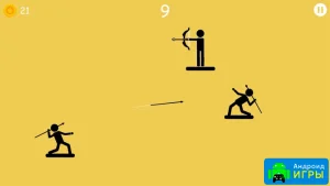 Для дальнейшего прохождения нужно очень точно метать копья. На игровой арене будет присутствовать главный герой и несколько врагов, расположенных на различных платформах по всей арене. Это обеспечивает усложнённый доступ, а также большая или меньшее расстояние. Основная задача игроков заключается в том, чтобы уничтожить друг друга при помощи доступного оружия. Главный герой будет пользоваться копьями, а его противники могут работать луком. Побеждает тот, кто останется на арене последним выжившим. Поначалу ничего сложного в продвижении не будет, но чем дальше игрок будет проходить, тем большее количество врагов будет ему противостоять.Тапните чтобы прицелиться