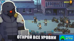 Это один из тех проектов на android смартфон, который подкупает не своей графической частью, а геймплеем. Визуально Dead Ahead: Zombie Warfare выполнено в пиксельной стилистике, при этом не обеспечивая какого-то невероятного уровня спецэффектов или проработки окружения. Этого вполне достаточно чтобы рассмотреть противников и найти выживших, но получать визуальное удовольствие от происходящего будет не так-то просто. Однако, можно отметить неплохие анимации, выполненные при помощи современных технологий. Соответственно, все движения героев будут выглядеть достаточно плавно и интересно.Особенности