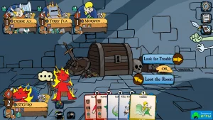 В самом начале нужно выбить дверь, которая заперта. Ещё можно посоревноваться с собственными друзьями: кто больше убьёт врагов и добудет магических предметов, тот станет победителем. Сама игровая механика представлена в качестве стандартной карточной игры.