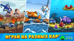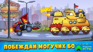 Car Eats Car 3: Война Машин — это продолжение популярной аркадной гонки от студии SMOKOKO GAMES, где вы окажетесь по другую сторону закона, играя не за героев, а за злодеев. Но, как выясняется, у них тоже есть сердце. На этот раз игроку предстоит вжиться в роль боевой машины, готовой на всё ради спасения своих товарищей, попавших в тюремное заключение. Игра бесплатно распространяется на все актуальные версии операционной системы Аndroid. А у нас на сайте есть взломанная версия, которая открывает доступ к большому количеству денег.