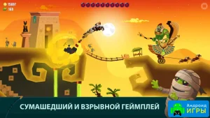 Тут нет сложных схем, ведь вся механика сводится к простым свайпам. Вам не нужно изучать кнопки и интерфейсы. Всё, что требуется использовать— это один палец. Такое решение делает игру особенно удобной на мобильных устройствах, позволяя полностью сосредоточиться на экшене.Графика выполнена в двумерной рисованной стилистике с яркими цветами и насыщенными визуальными эффектами. Каждый уровень полон деталей: взрывы, искры, разрушения, а также уникальные локации, создающие ощущение живого и разнообразного мира. Плавные анимации и зрелищность делают каждое столкновение по-настоящему захватывающим.