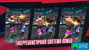 Визуальная часть Real Boxing 2 продумана до мелочей. Высокое качество графики позволяет разглядеть каждую деталь — как на вашем персонаже, так и на арене. Приятные визуальные эффекты и насыщенная атмосфера поединков создают полное погружение в процесс. Сражения ведутся от третьего лица, что даёт возможность наблюдать за каждым движением и точно рассчитывать тайминг ударов. Для повышения интереса в игре предусмотрена функция повтора в замедленной съемке — это позволяет взглянуть на ключевые моменты под другим углом. Перед началом матчей рекомендуется пройти обучение, которое поможет запомнить базовые и продвинутые комбинации ударов, а также потренировать реакцию.Прямо сейчас вы можете загрузить игру с нашего сайта и получить насыщенный опыт от динамичного боксерского симулятора.