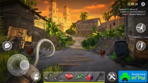 Особое внимание в игре уделено визуальному оформлению. Проект радует реалистичной HD-графикой с поддержкой полного 3D. Вид от первого лица делает происходящее особенно захватывающим: вы буквально чувствуете каждый шаг по песку, слышите шум листвы и рев диких зверей. Атмосферу усиливают проработанные визуальные эффекты — от смены дня и ночи до погодных условий.Управление интуитивно понятное: виртуальный джойстик слева позволяет двигаться, а кнопки справа отвечают за действия, атаку и взаимодействие с предметами. В нижней части экрана расположено быстрое меню для быстрого доступа к нужным предметам.