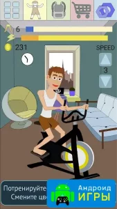 С первого взгляда, может показаться, что реализовать эту цель довольно-таки тяжело, но всё не так уж и сложно. Нужно начинать тренировку с рук и ног, просто нажимая на дисплей собственного гаджета. В процессе прокачки можно наблюдать за тем, как ваш герой выполняет тренировки. А у нас на сайте есть взломанная версия, которая открывает доступ к получению огромного количества денег и к отключённой рекламе.