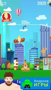 Управление интуитивно понятное: достаточно всего пары нажатий в нужный момент. Всё, что нужно — это тапнуть по экрану в подходящее время, чтобы отправить своего персонажа в полёт и получить заслуженные очки.
