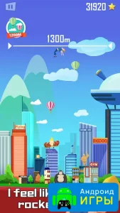 Ваша задача — разместить взрывчатку так, чтобы герой полетел в нужном направлении и приблизился к установленной точке приземления, тем самым увеличивая силу полета. В распоряжении игрока — свыше 50 уникальных персонажей, которых можно открывать буквально за несколько минут в игре.Игровой мир выполнен в ярких цветах и отличается живописными декорациями. Вы управляете героем, у которого в руках — человечек, выполняющий роль снаряда. Возьмите его, прицельтесь и метните как можно выше. Устанавливайте личные рекорды по высоте, ловите своего персонажа после полета, зарабатывайте очки и прокачивайте героя. Повышайте его силу и дополнительные характеристики, чтобы выполнять ещё более мощные запуски, стремясь сначала к орбите, а затем и за её пределы.