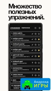 - множество заданий, охватывающих различные аспекты реакции и внимания, а также многое другое.