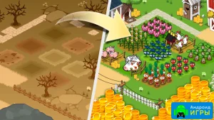 Когда земля будет готова, переходите к посадке растений и разведению животных. В вашем распоряжении будет девять участков, на которых можно выращивать самые разнообразные культуры и создавать загоны для скота. Для успешного развития нужно грамотно распределять ресурсы, чтобы максимально увеличить урожай и доход. Постепенно расширяйте ферму, пробуйте новые локации и соединяйте свои владения в одну мощную и прибыльную империю, которая будет приносить вам все больше богатств.