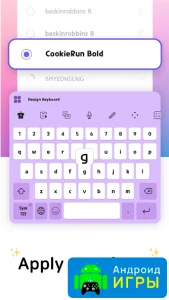 Одна из ключевых функций — это продвинутый редактор шрифтов. Вы сможете выбрать любой из множества вариантов с удобными названиями для быстрой навигации. Меняйте размер, цвет и стиль текста по своему усмотрению. Хотите ещё больше индивидуальности? Загружайте собственные символы и иконки, формируя клавиатуру своей мечты.Выбор фона — ещё одна сильная сторона приложения. Здесь есть как встроенные обои из каталога тем, так и возможность использовать собственные изображения. Установите в качестве фона любимую фотографию, снимок природы или изображение семьи. А цветовую гамму клавиатуры можно полностью адаптировать: от цветных панелей до оттенков кнопок и текста.
