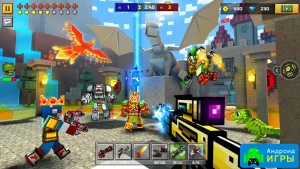 В самой игре Pixel Gun 3D вы окажетесь в ярком, хорошо анимированном мире, который напоминает другие популярные игры, но при этом предлагает более широкий функционал и возможности. Создайте своего уникального героя и отправляйтесь на одну из первых карт, где сразу начнутся захватывающие сражения. В ходе боя вам предстоит перемещаться по карте, искать укрытия и самостоятельно возводить различные сооружения для защиты от огня противника. Арсенал игры поражает разнообразием — в нем более 800 видов оружия, включая пистолеты разных калибров, автоматы, снайперские винтовки, дробовики, гранаты, мечи, топоры, бластеры, лазерные пушки, огнеметы, пулеметы и многое другое.Кроме этого, игра предлагает более 10 различных игровых режимов, а также свыше 10 мини-игр, которые помогут разнообразить игровой процесс и позволят отдохнуть от интенсивных перестрелок. Если вы хотите проявить себя и доказать свое мастерство, для вас доступны клановые войны, где вы сможете сражаться за высокие позиции в рейтингах и стать одним из лучших игроков.