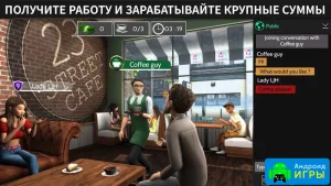 Интерфейс в игре выполнен в стиле социальных сетей. Здесь есть профиль с друзьями, статусами, хобби и даже «настроением» вашего героя. Всё интуитивно понятно и доступно. Графика напоминает Sims, но с яркими, мультяшными оттенками и мягкой анимацией. Персонажи двигаются плавно, а окружение радует глаз разнообразием.Справа находится удобный чат, позволяющий поддерживать связь с другими игроками. Создавайте групповые или приватные беседы, обменивайтесь эмоциями и заводите виртуальные знакомства. Возможно, именно здесь вы встретите верного друга или родственную душу.