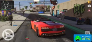В начале вы выберете свой первый автомобиль и определитесь с режимом, в котором хотите начать игру. Один из них — свободная езда по городу. Здесь можно просто наслаждаться управлением машиной, исследуя улицы и не ограничивая себя никакими задачами. Другой режим — многопользовательский, где вы окажетесь на дороге вместе с другими участниками. В этом случае придётся проявлять внимательность, чтобы не допустить столкновений. Также доступен режим парковки, в котором вы сможете практиковать точные манёвры — будь то заезд в гараж, параллельная парковка или другие сложные ситуации, требующие аккуратности и точности. Отдельного внимания заслуживает режим разрушений. В нём ваша цель — нанести как можно больше ущерба объектам, зарабатывая игровые очки.Накопленные средства можно тратить на покупку новых машин и улучшения уже имеющихся. Игра предлагает широкий спектр тюнинга: от технической до визуальной составляющей. Можно прокачать двигатель, тормоза и подвеску, а также изменить внешний вид — от цвета кузова до смены бамперов или установки новых дисков. Возможностей по кастомизации достаточно много, и они позволяют сделать каждую машину действительно уникальной.