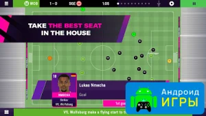 Football Manager 2022 Mobile на Android — это реалистичный футбольный симулятор, в котором игрокам предстоит взять на себя функции настоящего спортивного менеджера. Вам предоставляется полная свобода действий и ответственность за судьбу футбольного клуба. Примите на себя все ключевые решения — от комплектования состава до выработки тактики и управления трансферами.
